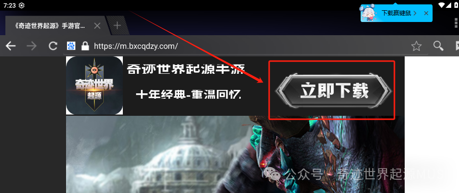《奇迹世界起源》手游苹果端下载详细攻略第二步点击你下载好的模拟器,然后找到模拟器桌面系统应用里面的浏览器输入下方地址下载游戏!